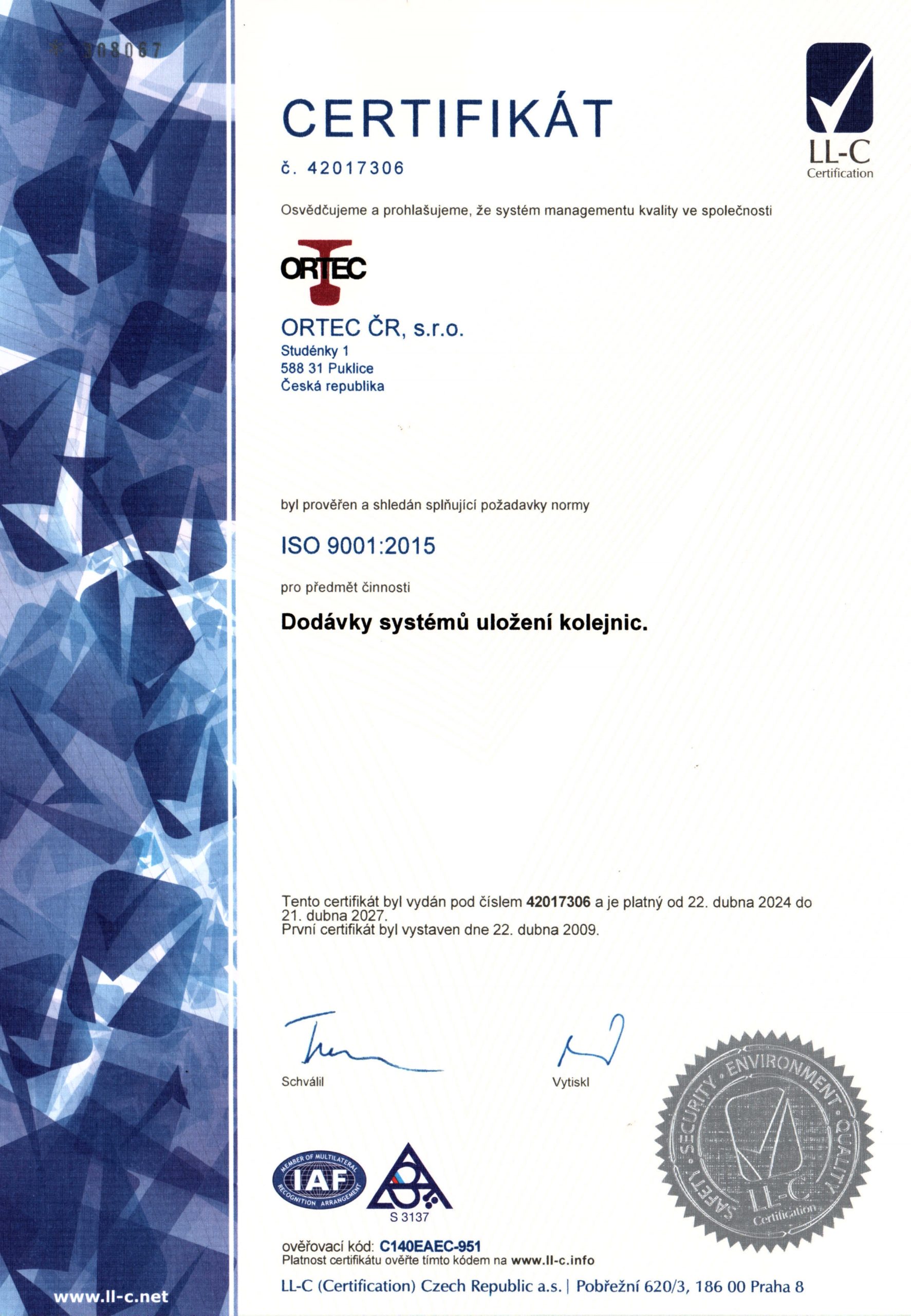 The company ORTEC ČR s.r.o. has been working on the Czech market since 2000 and in her branch belongs to traditional and reliable supplier. The company has its customers abroad, too. The company has introduced the system of quality acc. ISO 9001:2008.